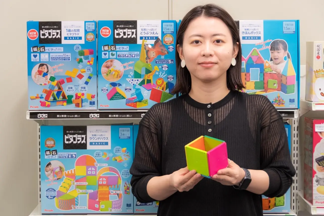 子どもはもちろんおとなも夢中になり、遊びを通して空間認識力が育まれ、算数の学習にも役立つと話題の「ピタゴラス」シリーズ。前半の『遊びながら空間認識力を育む! 算数の学びにもつながる「ピタゴラス」シリーズ』では、「ピタゴラス」シリーズの開発のきっかけや商品化までの経緯、遊び方などについて、「ピタゴラス」をはじめとした商品の企画をしているピープル株式会社 企画部の花牟禮(はなむれ) 瑠実子さんに話を伺いました。